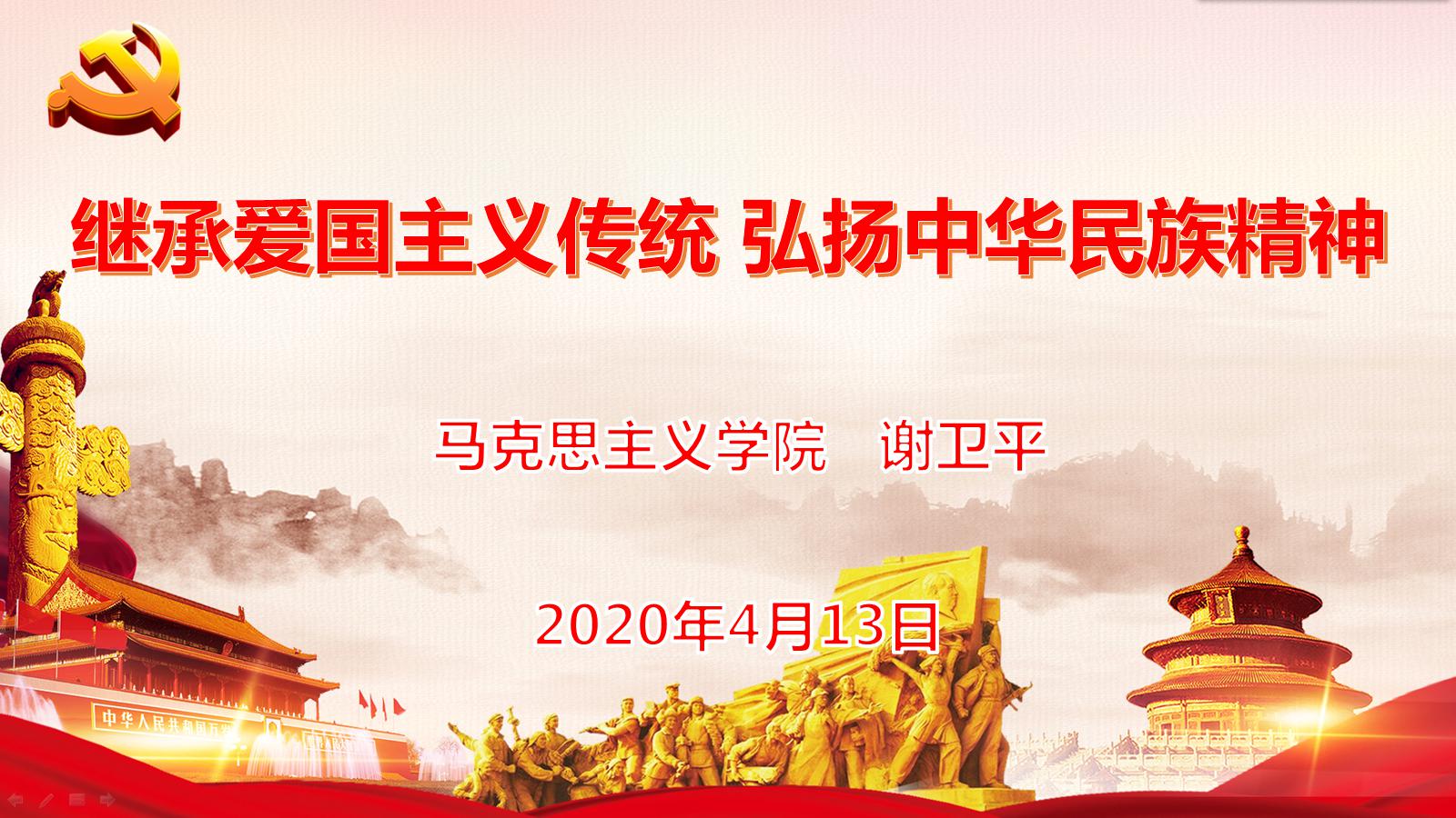 2020年4月13日晚,马克思主义学院党总支书记谢卫平在腾讯会议上为1946伟德国际源自英国第28期入党积极分子培训班学员讲授了一场“继承爱国主义传统,弘扬中华民族精神”讲座。