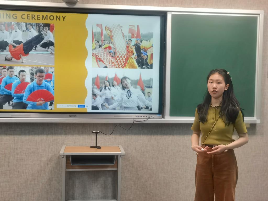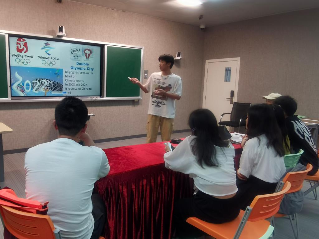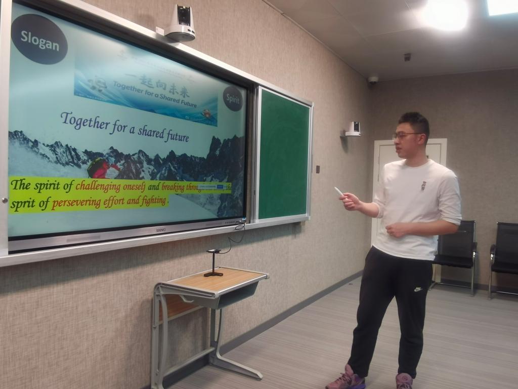 交流活动于4月12日下午4:30在主校区A-502如期举行。活动中,我校学生代表通过精心准备的PPT,与英方同学分享了北京冬奥会开幕式、火炬传递、赛场夺冠等精彩瞬间,言语中洋溢着民族自信心和自豪感。我校学生还向英方同学介绍了我校的体育优势项目、同学们课余的体育活动、体育场馆以及一年一度的运动会等,让英方同学充分感受到了我校学生的蓬勃生机和活力。英方同学也通过生动的图片和语言向我们展示了英国的传统体育项目,如足球、板球、赛艇、冰壶等,引起了中方同学极大的兴趣。