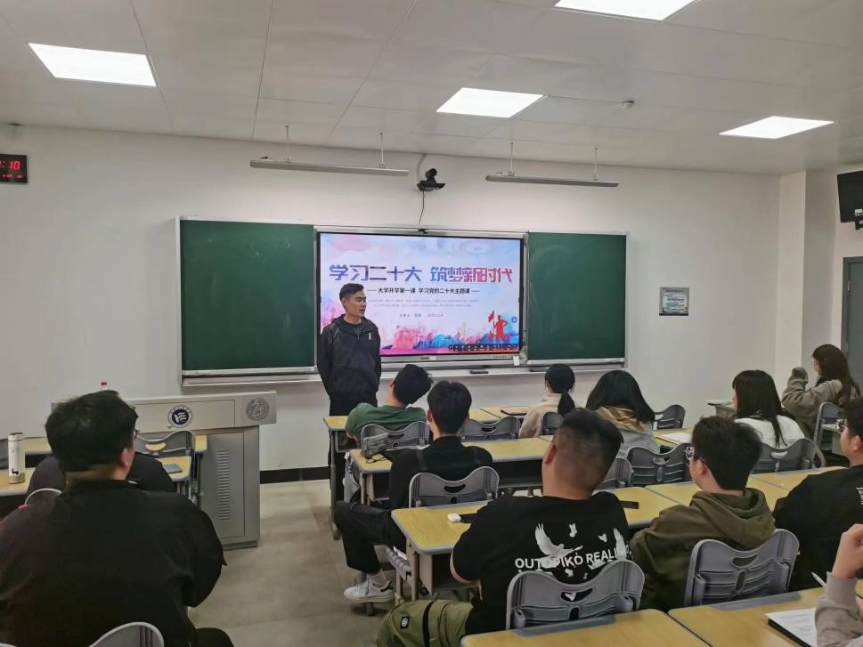 随后,党支部书记张轶以“学习二十大 筑梦新征程”为题,给全体学生党员讲党课。他结合自己的工作经历,围绕学习贯彻党的二十大精神总体要求以及学生党员如何贯彻落实党的二十大精神等方面进行详细讲解。他强调,党员同志们应努力做新时代具有远大理想和坚定信念的爱国者,应敢于担当、勇于奋斗,努力做新时代具有责任意识和创新精神的建设者,更应勤奋学习、锤炼身心,努力做新时代具有过硬本领和高尚品格的接班人。