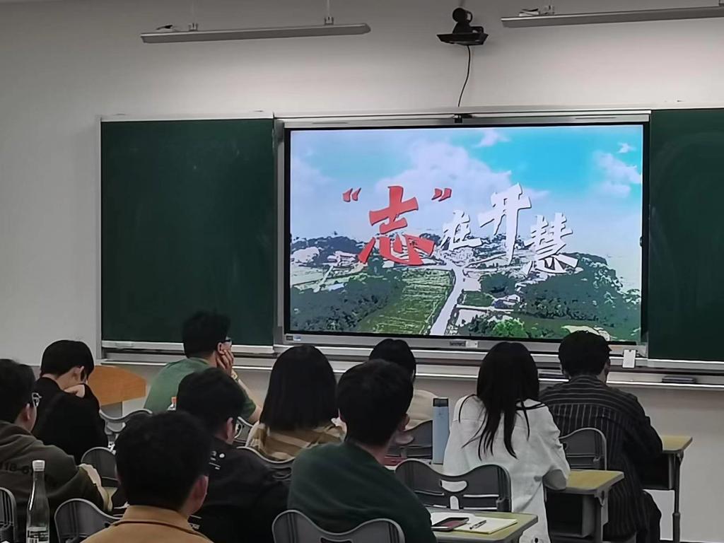 党课后,支部党员集中观看党员教育片《“志”在开慧》。该片讲述了湖南省社会科学院原党组书记、院长朱有志退休后主动请缨担任长沙市长沙县开慧村党支部第一书记后,带领该村从省级贫困村变为中国美丽乡村百佳范例的先进事迹。“党把我培养成人,退休以后用什么方式来报答党?扎根农村,服务农民,只要党和人民需要我,我就会在这里干下去”,朱有志这位老共产党员抱着这股对党的事业无比热爱的初心和信念,十数年来怀着满腔赤诚坚守乡村,让党员同志们看到了一位真正共产党人的崇高品质,深刻体会到什么是党员的为民情怀。“把论文写在祖国大地上”的朱有志更是深深触动了在场的每一位党员的心,进一步加强了党性修养,凝聚了思想共识。学生党员观影后纷纷表示,要向朱有志同志学习,践行一个共产党员的初心、使命,做有理想、敢担当、能吃苦、肯奋斗的新时代大学生。