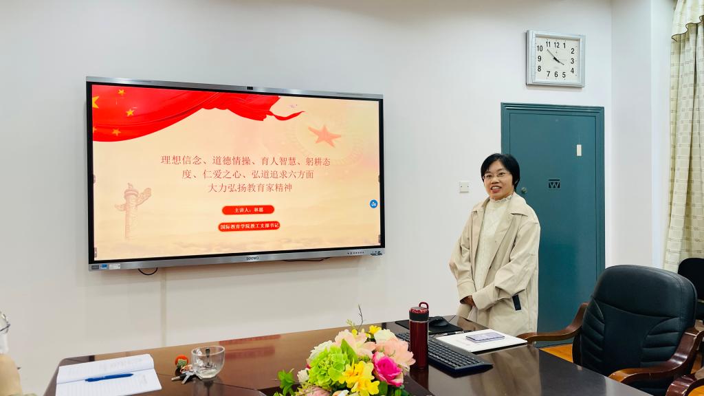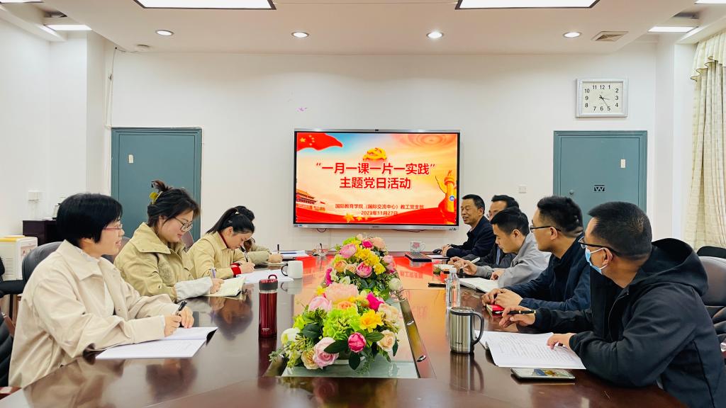 强国必先强教,强教必先强师。为学习贯彻落实党的二十大精神和习近平总书记关于大力弘扬教育家精神的重要指示,11月27日下午,1946伟德国际源自英国(国际交流中心)党总支教工党支部在E105会议室举行“一月一课一片一实践”主题党日活动。活动由支部书记林愿主持,支部全体党员参加。