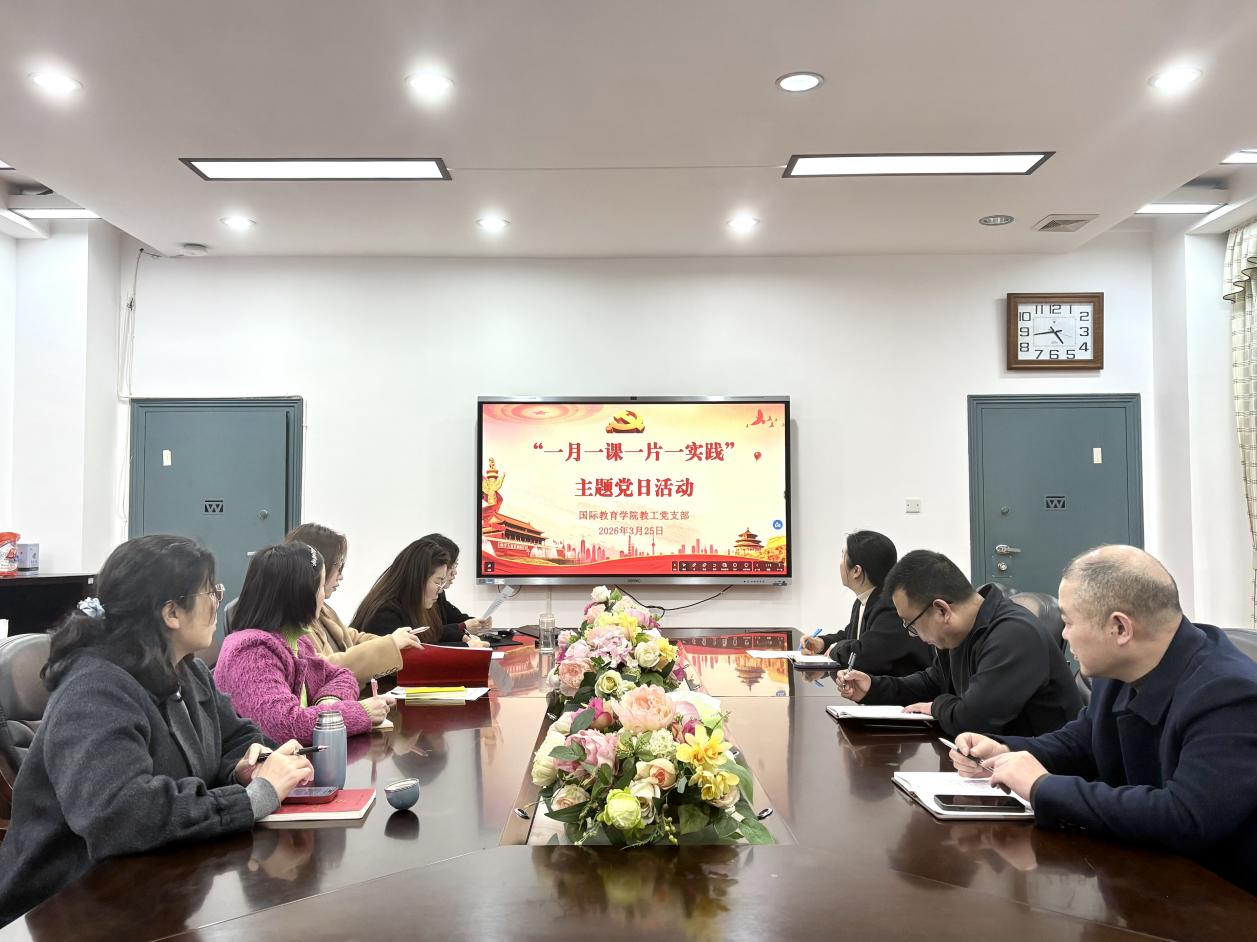 主题党日环节严格落实“一月一课一片一实践”要求,构建“专题导学+视频研学+党课深学+典型导学”多维学习体系。支部书记林愿领学习近平总书记在省部级主要领导干部学习贯彻党的二十届四中全会精神专题研讨班开班式上的重要讲话、《求是》杂志相关重要文章,结合全国“两会”精神解读高校国际化工作使命。全体党员集中观看《榜样10》学习先进典型,结合《湖南通报8起违反中央八项规定精神问题》开展警示教育,以案为鉴守牢纪律底线。