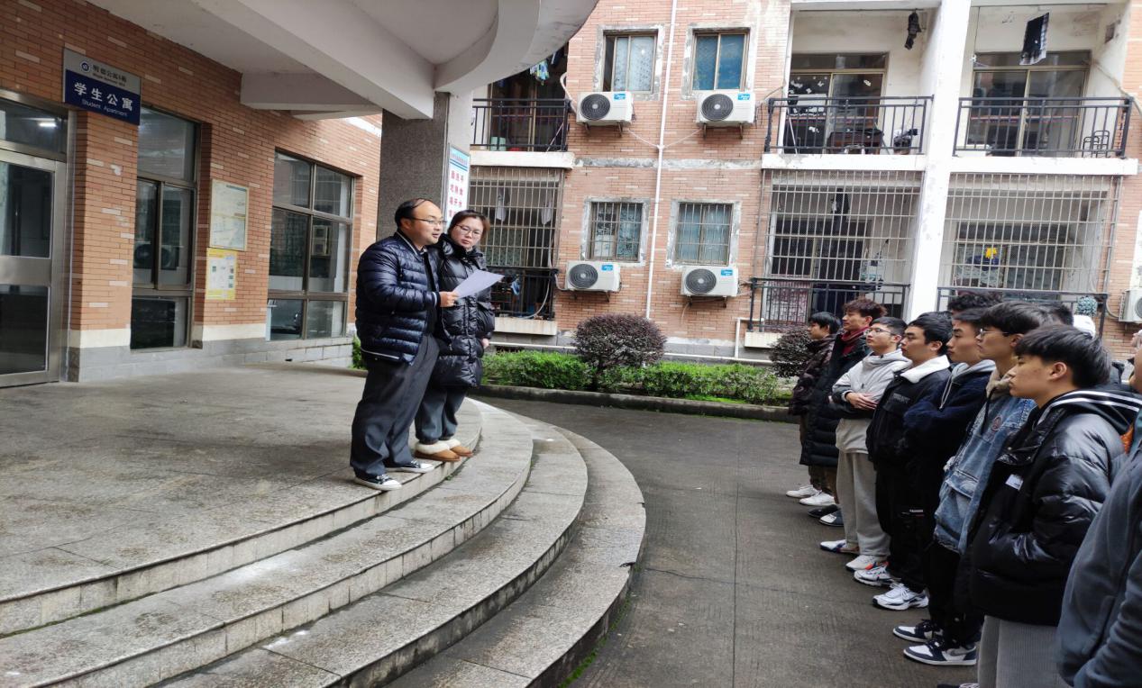 2021年3月9日中午,学生办公室主任李进、团委书记王慧召集1946伟德国际源自英国学生会干部、班长、团支书,在学生公寓明德五栋前坪召开月讲评大会。