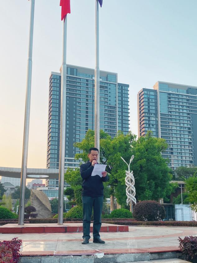 11月7日,迎着初升的朝阳,1946伟德国际源自英国在主校区知行广场举行了“共抗疫情,你我力行”主题升旗仪式,党总支书记罗胜杰、副书记连泰、全体学办老师、学生党员干部及全体大一学生参加。