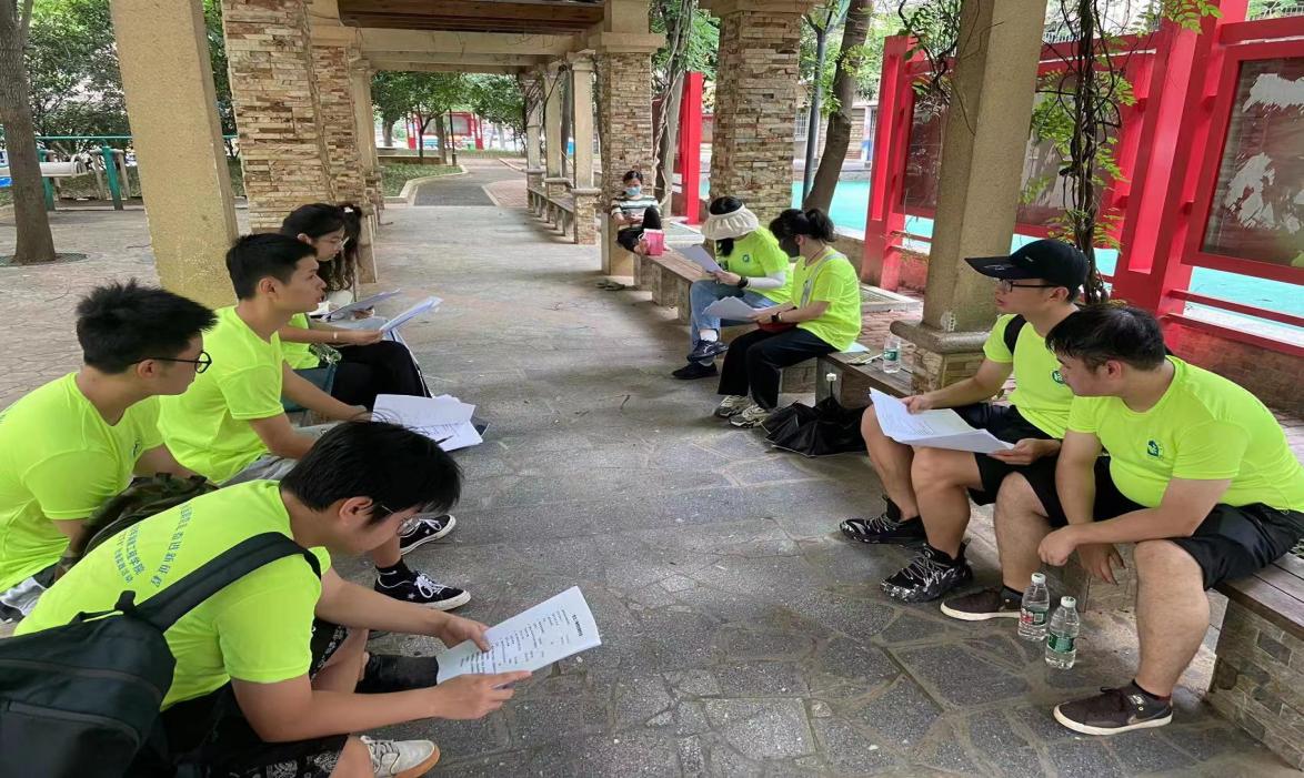 在前期充分准备后,团队在霞光社区负责人罗书记的协助下有序布置好场地并开始宣讲活动。活动伊始,队员们积极向社区居民分发此次党史学习教育的宣传手册,并在分发过程中向居民们简要说明了团队活动目的和手册主要内容。分发完毕后,学生负责人江博凡为在场的社区居民们简要介绍党的百年奋斗历程,向大家讲述伟大建党精神。社区居民们深受触动,在现场认真聆听并与其他队员们展开交流与讨论。