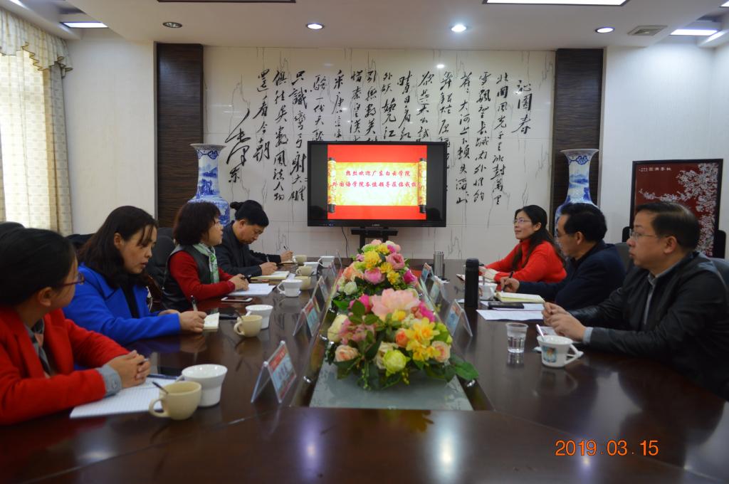 广东白云学院外国语学院副院长沈纯洁一行感谢我院的经验分享,同时交换了他们在中外合作办学、英语教学等方面的经验。双方都希望不断加强两校间的交流与合作,进一步增进友谊,促进两校的共同发展。