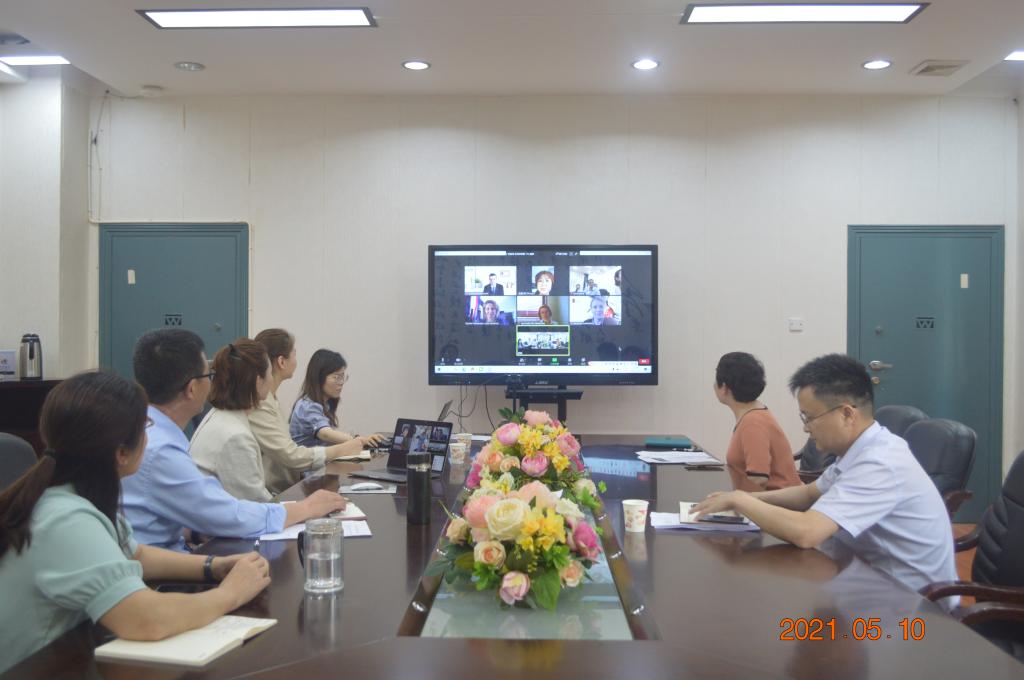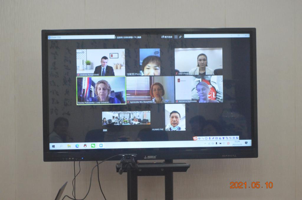 5月10日,我校与波兰罗兹科技大学在主校区E-105召开线上洽谈会议,副校长罗毅平通过视频参加会议。