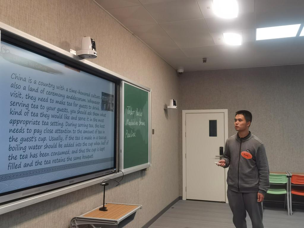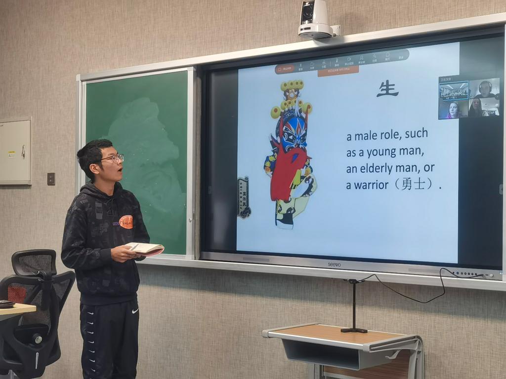 交流活动中,中方学生代表首先展示了我校校庆短视频,与英方同学分享了我校庆祝70华诞的成功和喜悦。接下来,来自机械制造及其自动化专业的同学代表向英方同学展示了中国著名的非物质文化遗产——京剧的魅力。京剧五彩的脸谱、精美的装扮、丰富的角色深深吸引了英方同学,他们齐声赞叹,“It is amazing来自电气工程及其自动化专业的同学则向英方同学展示了另一非物质文化遗产——中国茶的起源、种类、制作等细节,使英方同学从小小的茶叶中感受到了中国文化的源远流长和博大精深。