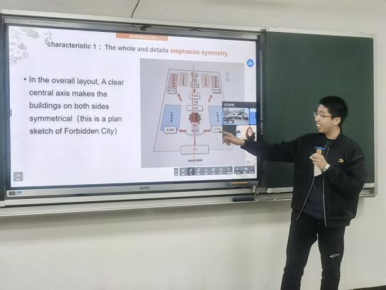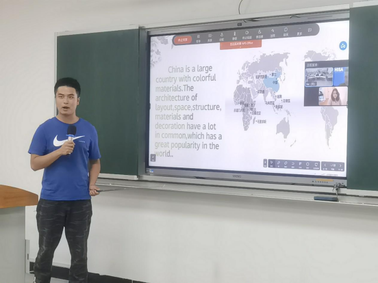 活动中,我校学生通过精心准备的PPT,与英方同学分享了中国现代建筑和中国传统建筑两种鲜明的建筑类型,从建筑的起源与发展、设计特点及代表建筑物等方面向英方同学介绍了中国建筑。同学们通过图片、视频和文字展示了中国建筑文化的源远流长与博大精深。同时,英方同学也通过生动的图片和语言向大家展示了英国欧式建筑并介绍了欧式建筑特点,引起中方同学极大的兴趣。