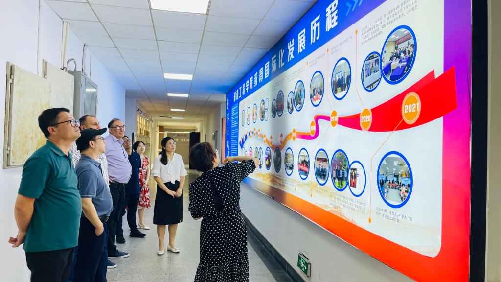 最后,Bryan一行参观了学校校史馆、计算机与通信学院实验室、教室、文化走廊等地,了解了我校与英国高地与群岛大学合作举办的两个本科教育项目的项目办学和教育实践情况,外宾深刻感受到了伟德bv1946“锲而不舍,敢为人先”的校训内涵。
