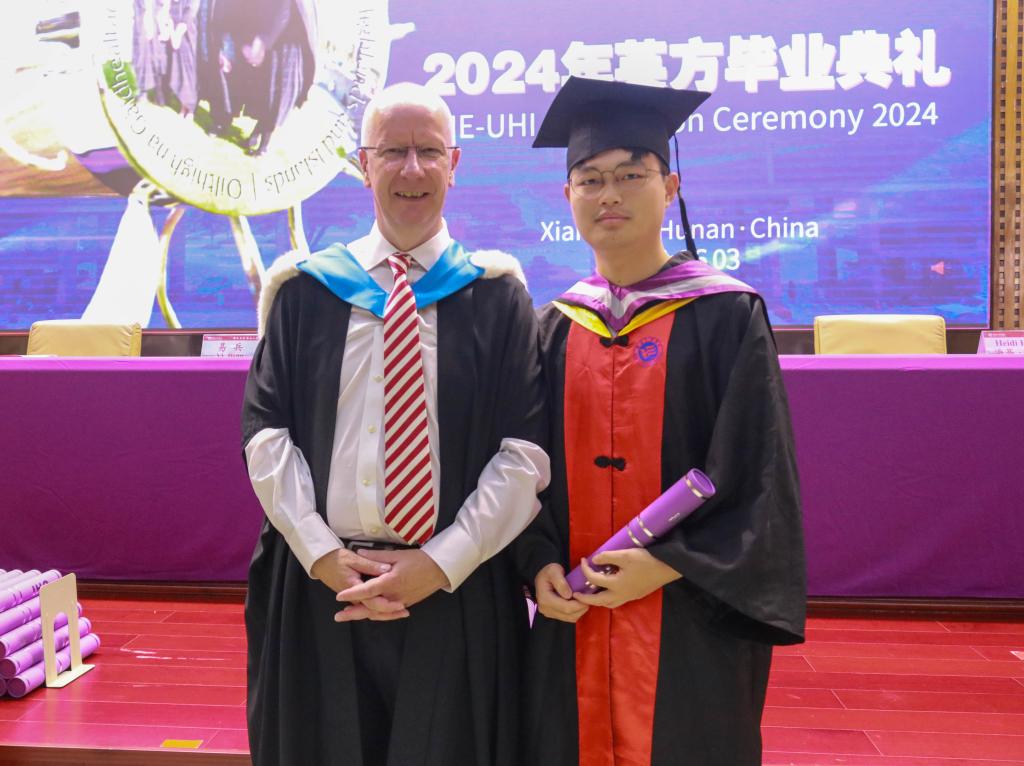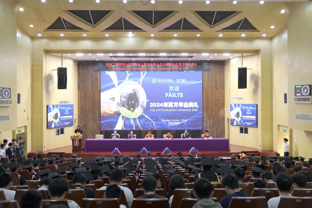 我校与英国高地与群岛大学(以下简称UHI)双方校领导,1946伟德国际源自英国、电气与信息工程学院、机械工程学院及相关部门负责人,合作办学项目专业教师,1946伟德国际源自英国2024届毕业生、部分家长及低年级学生代表欢聚一堂,共同见证我校与UHI合作项目2020级电气工程及其自动化和机械设计制造及其自动化两个本科专业共217位学生获得UHI学士学位。