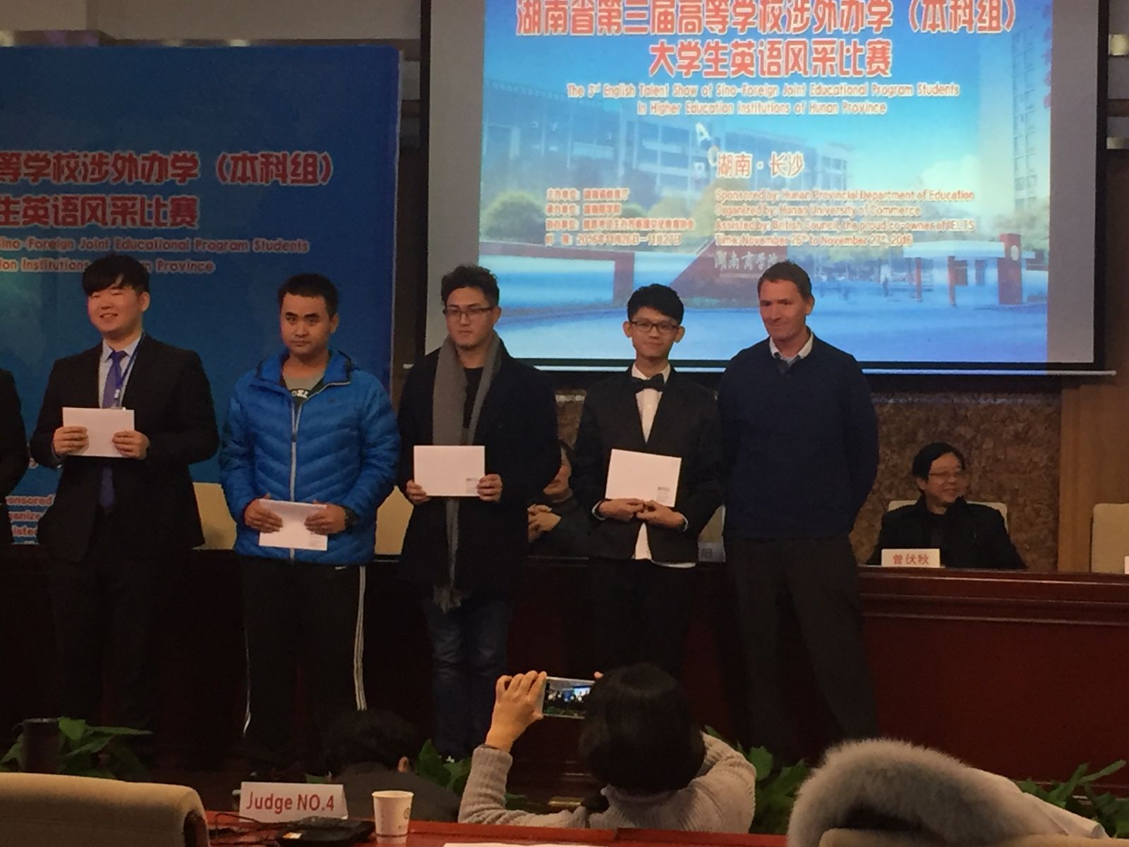 11月25日-27日,湖南省第三届高等学校涉外办学(本科组)大学生英语风采大赛在湖南商学院举行,我校1946伟德国际源自英国学生毛劭枫、邹意、吴一舟参加了比赛,荣获个人一等奖、三等奖、优胜奖各一项,我校同时获得团体三等奖。