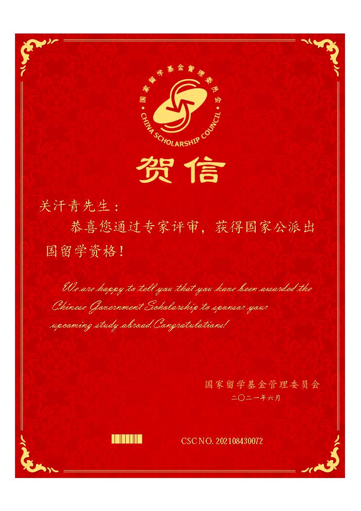 近日,我校机械工程学院关汗青老师申报的2021年国家留学基金委国家公派高级研究学者、访问学者、博士后项目喜获成功。该项目获得国家留学基金委资助,关汗青老师将作为博士后赴国外留学两年。