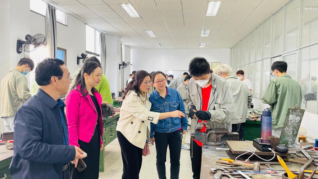 工程训练中心主任胡慧、党总支书记肖江淑对曹丽英一行的到来表示热烈欢迎。双方在工训中心综合楼207就学生实习期间学习、生活和安全等情况进行了亲切交流。