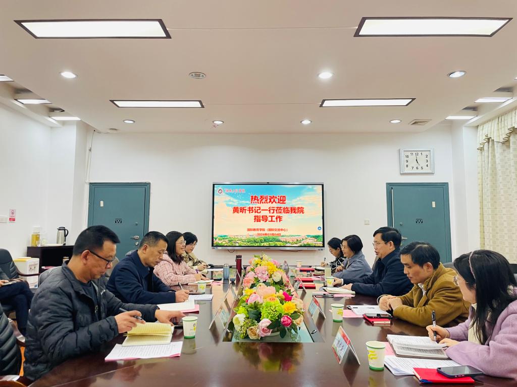 2024年1月4日下午,校党委书记黄昕一行到1946伟德国际源自英国(国际交流中心)调研,学院全体领导班子、科长及岗位负责人参加调研座谈会。会议由学院党总支部书记罗胜杰主持。