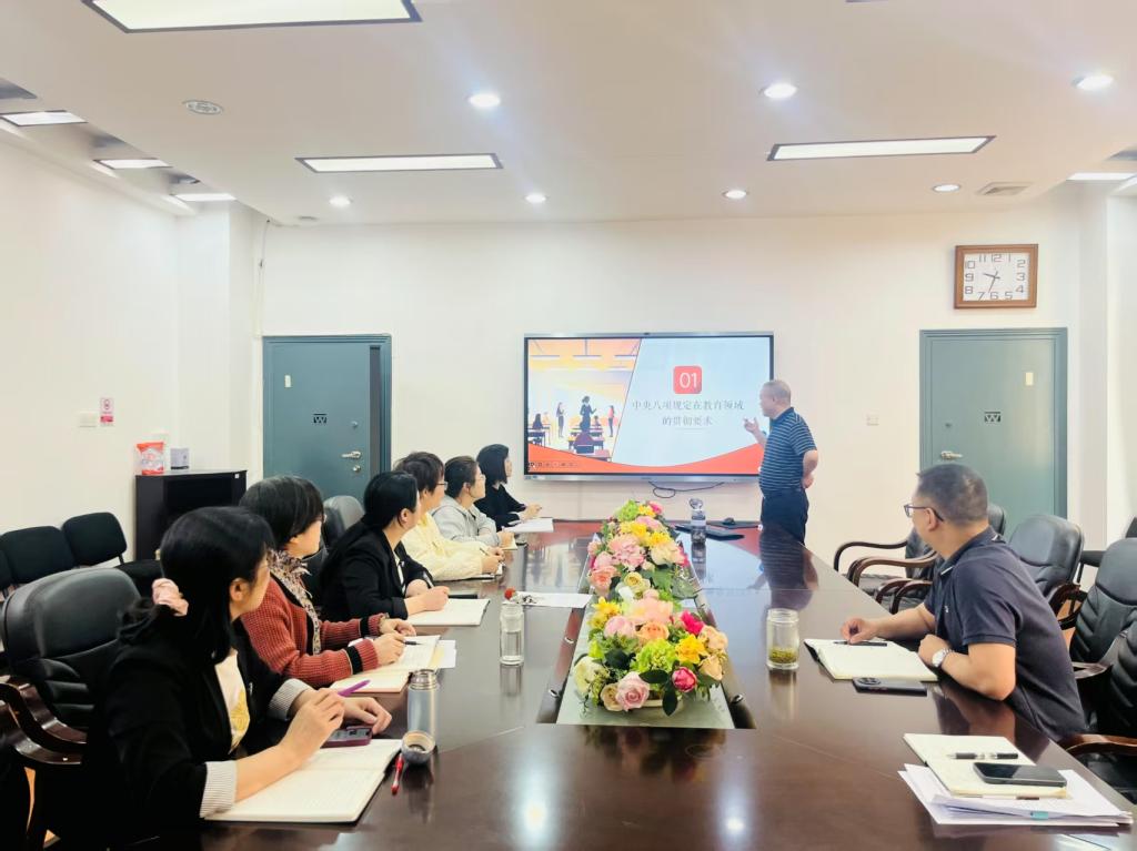 4月14日上午,1946伟德国际源自英国教工党支部在E105会议室开展清风育桃李 廉教润初心——深入贯彻中央八项规定精神学习教育主题党日活动。教工党支部书记林愿主持,全体教工党员参加