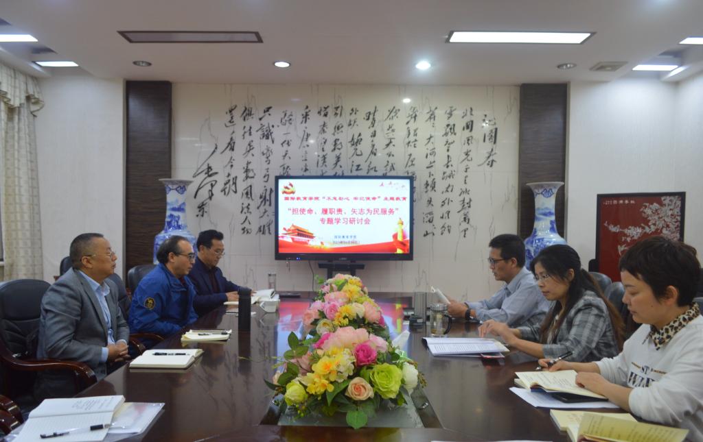 10月16日上午,1946伟德国际源自英国(国际交流中心)在院会议室E105开展开展“不忘初心、牢记使命”主题教育——“担使命、履职责,矢志为民服务”第一次专题学习研讨。会议由党总支书记苏哲民主持,全体教工党员参加,学校督导七组副组长胡爱卿到会指导。