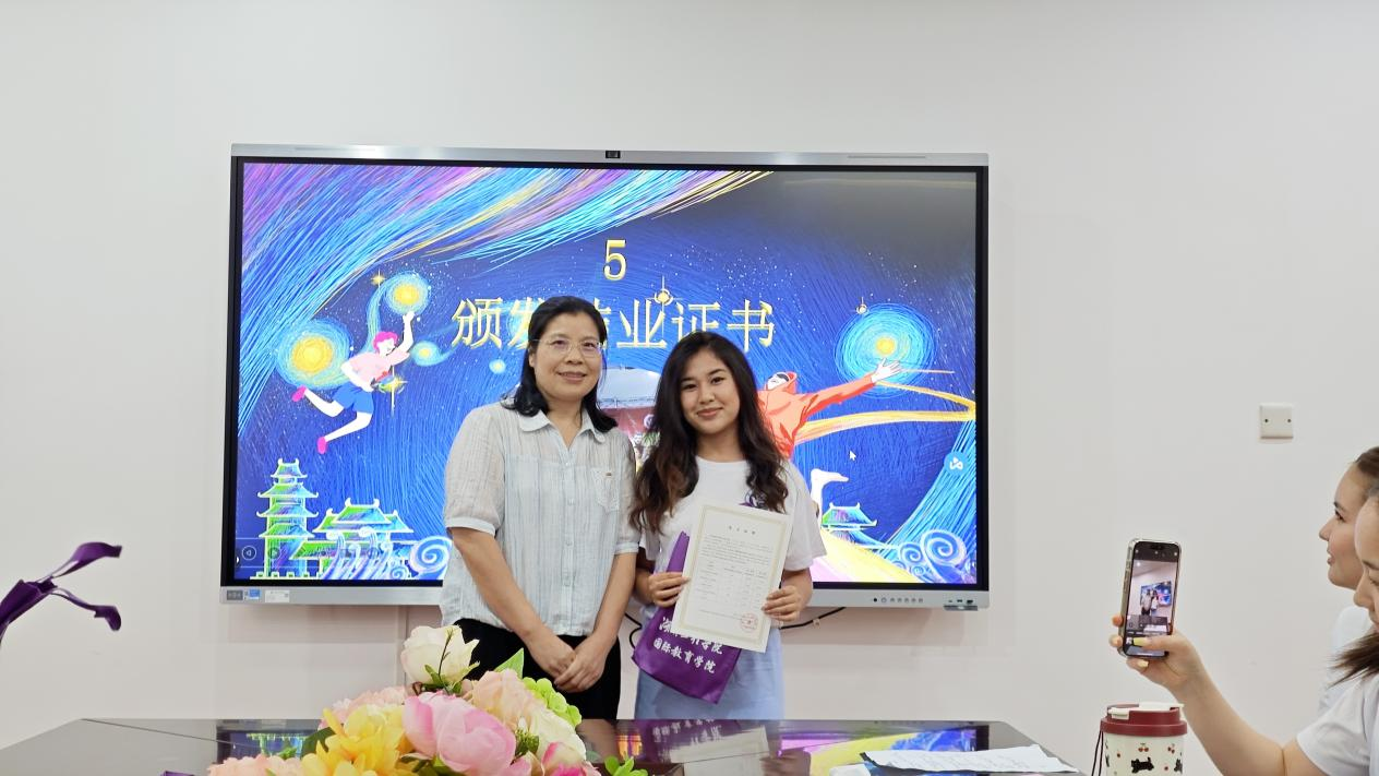 6月20日下午,1946伟德国际源自英国E105会议室一场承载着成长与告别的温馨盛会——2025届语言留学生结业典礼,便在这满溢着期待与温情的氛围中举行。院长曹丽英、副院长林愿、对外汉语教学团队、留学生办公室全体成员与2025届语言生齐聚一堂,以最热烈的掌声,共同为这段跨越山海的求学时光画上圆满句点。典礼由留学生办公室主任郑怀湘主持。