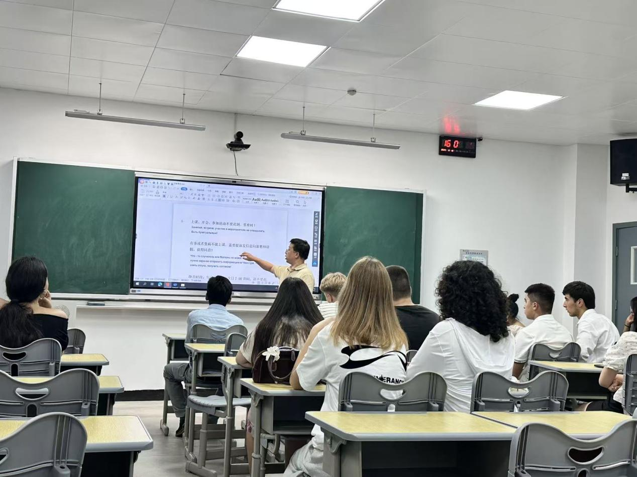 为助力国际留学生尽快适应校园学习生活,做好留学期间的规划与准备,9月12日,1946伟德国际源自英国组织来自吉尔吉斯斯坦、乌兹别克斯坦、哈萨克斯坦、俄罗斯、蒙古、塔吉克斯坦六个不同国家的语言留学生开展入学指导活动。留学生办公室主任怀湘及各学科教师、中文助教参与此次活动。