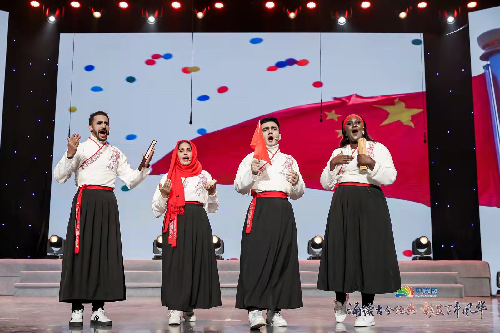 在留学生人才培养过程中,学院坚持引导学生亲近中华经典、感受中华文化,通过文化的浸润提升学生学习中国语言的兴趣。雅言传承文明,经典浸润人生。在2021年12月湖南省中华经典诵读大赛中,我校留学生小丫、扎苏尔、丽娜、阿尤布朗诵的作品《读中国》荣获留学生组一等奖并晋级决赛喜获季军;祝福、西子、巴哈、木江朗诵的作品《诗意中国》荣获留学生组三等奖。