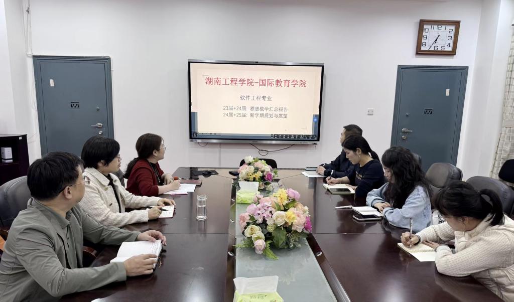 10 月 15 日晚间,1946伟德国际源自英国于 E105 会议室召开雅思教学专题研讨会。本次会议聚焦中新合作办学项目学生的语言能力培养需求,由学院副院长林愿主持,教务办公室相关负责人员与北雅教育派出的雅思专业教师团队共同出席,围绕雅思课程共建、教学推进及人才培养优化展开深度交流。