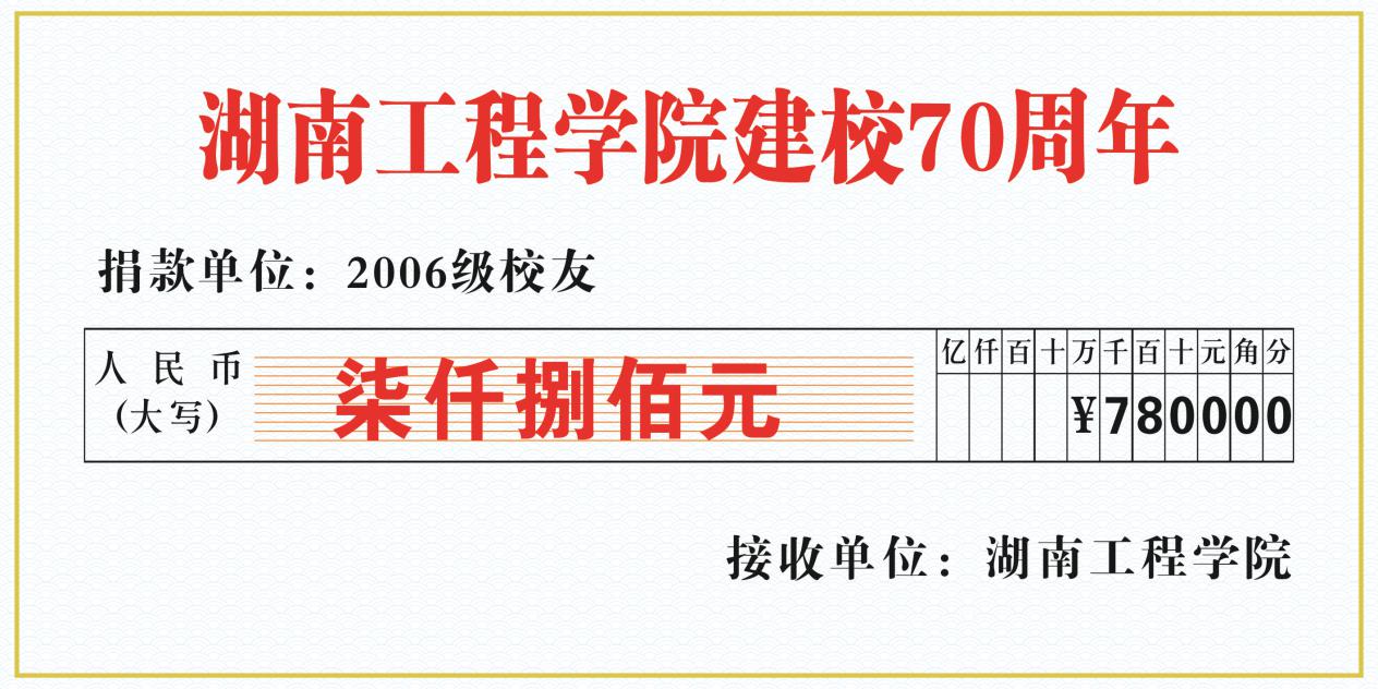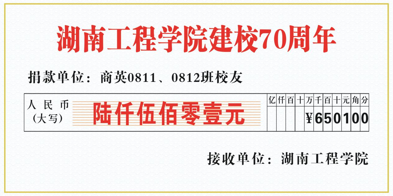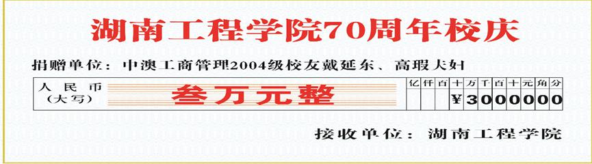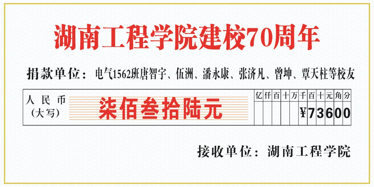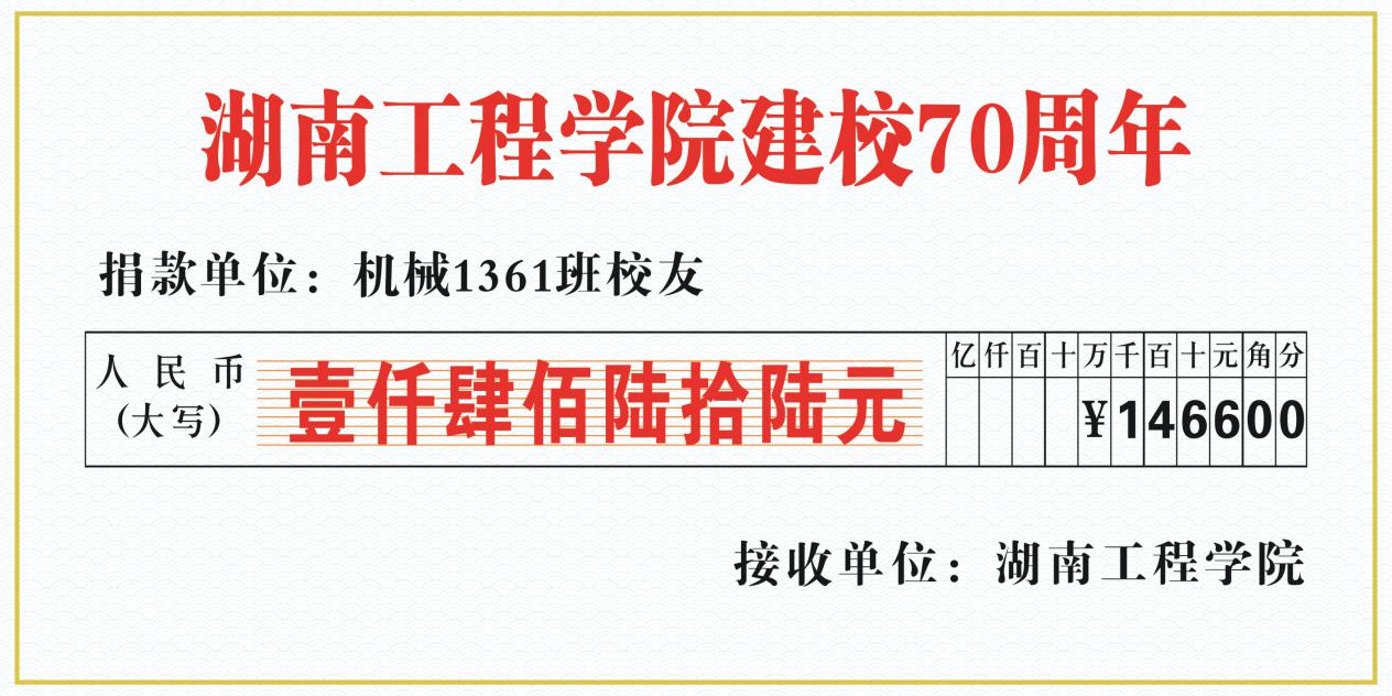 河北现代模具有限公司负责人、工商管理专业0412班杰出校友戴延东、高瑕夫妇捐赠30万元(十年期,每年三万元)设立校友基金;东莞市福洋电子有限公司副总经理、电气工程及其自动化专业1262班黄雄校友捐赠10万元;2004级校友赠送锲而不舍 敢为人先校训苏绣;商英1311班王国铮校友为母校特别订制校庆专用口罩......聚沙成塔,聚腋成裘,涓涓细流从四面八方汇聚湖工,凝成了校友们爱心之河。